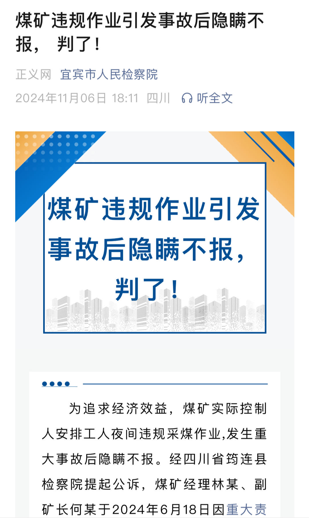 ▲宜宾市人民检察院公布煤矿瞒报事故案情