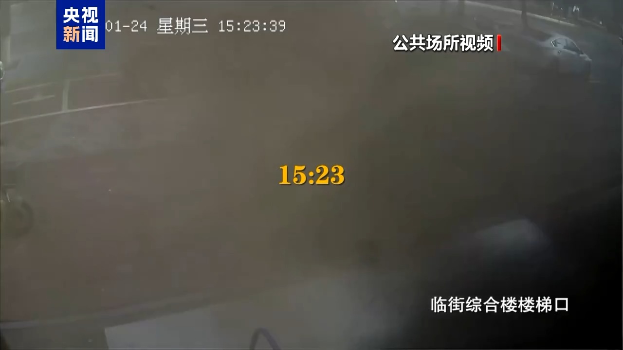 15点23分,一股黑烟裹挟着杂物从聚馨源宾馆楼下的楼梯口喷涌而出,瞬时间,整个浓烟就将公共场所视频覆盖,几乎与此同时,江工电竞门口一名正在搬动梯子的男子发现了火情。