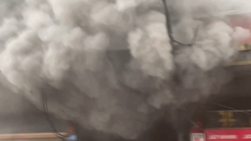 15点26分,已经有大量浓烟从博弈教育培训机构前侧方窗户冒出,短短三分钟时间,浓烟已经灌满整个建筑!这时,附近的人们抬着梯子冲向起火的综合楼,准备营救楼上被困人员,紧接着,二楼博弈教育培训机构后窗就有大量黑烟向外涌出,仅仅几分钟时间,画面中就充满了黑烟。从起火现场外围的公共场所视频可以看到,黑烟肆意向外翻滚,遮天蔽日,很快就将整栋综合楼卷入滚滚浓烟之中。