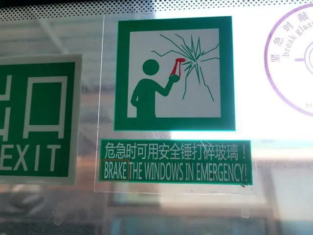 “为方便外国友人阅读,配文下面附有英文。”柳先生称,他仔细阅读英文后发现,翻译的第一个英文单词‘BRAKE’有问题。