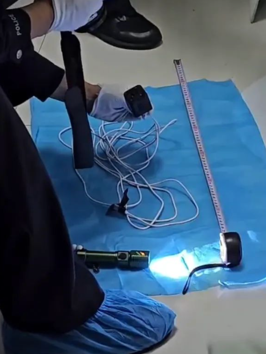 随后,警方也针对非法偷拍摄像头进行取证拆除。顺着安装隐藏摄像头的位置反向查找,发现电源竟然接到了房间外面过道的天花板上,用的是独立电源不受房间内的开关控制,可以做到24小时不断录像,安装手法极其专业。