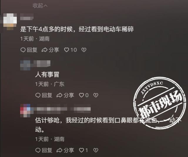 而在另一个视频下,有网友留言表示,“经过的时候看到电动车稀碎”,还有网友留言:路过的时候看到伤者伤势严重。