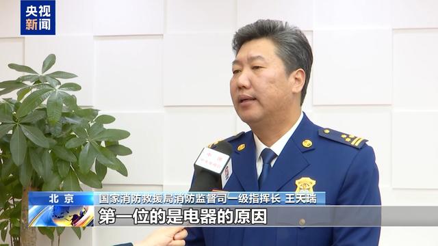 国家消防救援局消防监督司一级指挥长 王天瑞:第一位是因为电气的原因,达到了25%左右,第二位就是吸烟,达到20%,卧床吸烟容易引发火灾。第三类就是生火用火不慎,达到了19%,比如做饭忘了关灶等,这三类是比较高发的。