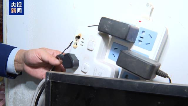 在四川遂宁,记者跟随消防和社区人员在一位独居老人家中看到,老人家中的插线板上插着多个大功率电器,其中一个插孔已经有明显烧焦痕迹。