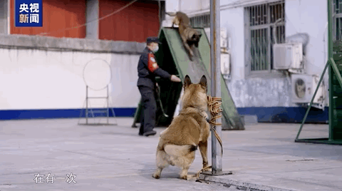 回到警队,巴顿时常能看到其他犬训练,它在一旁跃跃欲试。于是,训导员李晓东开始尝试对巴顿进行训练。