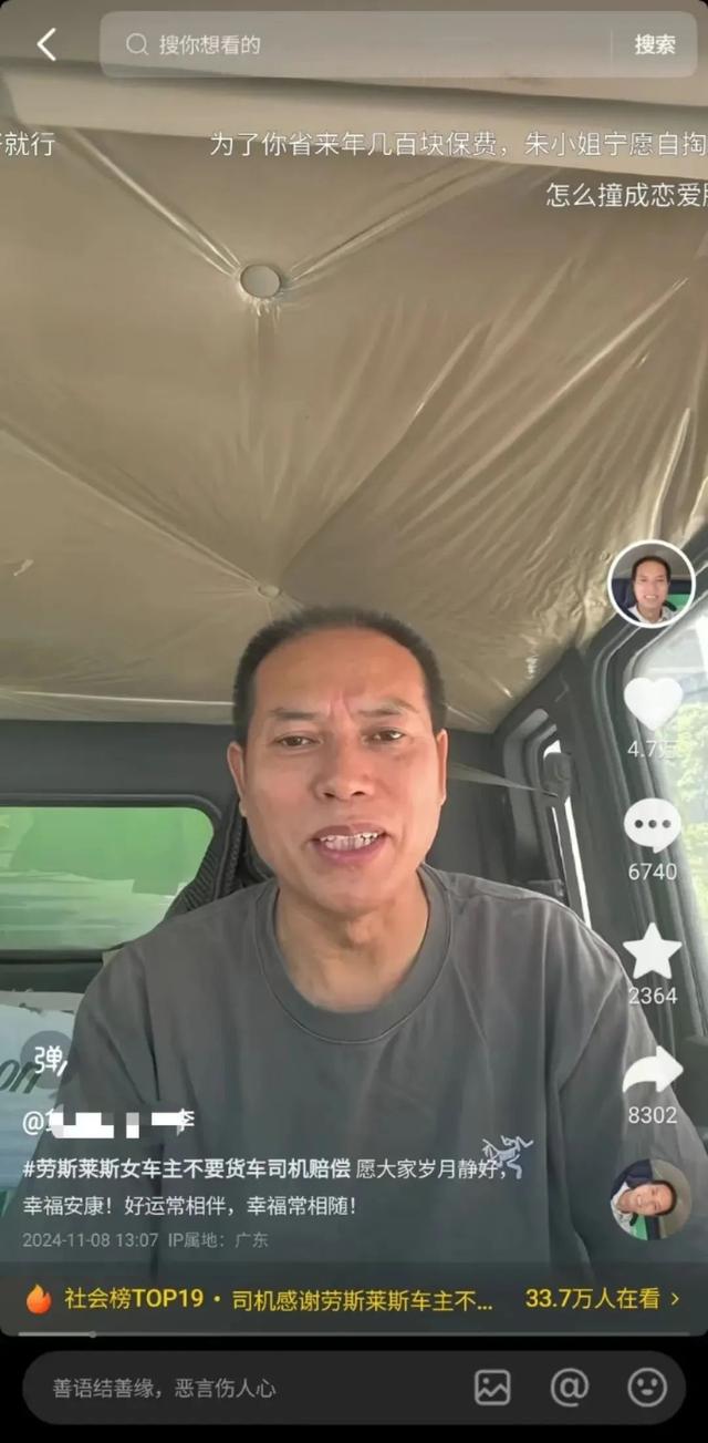 近日,在广州,一辆货车撞上劳斯莱斯,女车主为货车司机免去赔偿责任的事情引发关注,女车主被誉“人美心善”。女车主的抖音粉丝涨到了140多万。同时,此事引发的质疑声也不断。有网友质疑此事为剧本炒作。