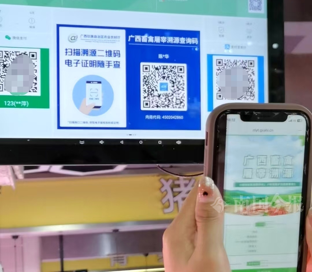 该负责人称,“桂食安”溯源码的公示,不仅方便了监管部门对市场肉类产品经营的管理,也在一定程度上提高了顾客的消费满意度和幸福获得感。