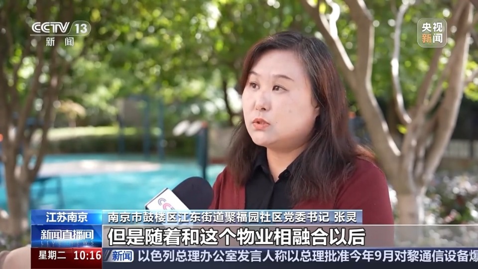 南京市鼓楼区江东街道聚福园社区党委书记 张灵:原来养老组织进来的话,可能居民会有一些戒备感,但是随着居民和物业相融合,把养老服务嵌入以后,确实是给老年居民带来了一些路途近,服务能够立马享受的这种便捷性。