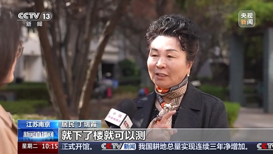 居民 丁瑞霞:测血糖、测血压,下了楼就可以测,很方便。