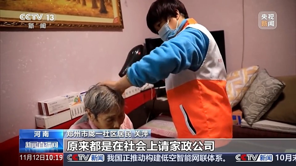 郑州市陇一社区居民 关萍:原来都是在社会上请家政公司找个人来照顾,或者是送饭,他们的价格有高有低的,也不知道哪个合适,感觉咱这个社区的服务人员专业,他们对老人的态度也非常好,而且已经服务过好几次了。在手机小程序也下过单,分类很齐全,有理发的、剪指甲的、洗澡的,非常方便。