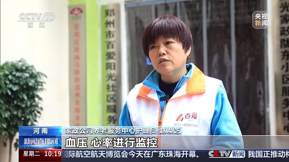 家政公司养老服务中心护理员 赵唤芝:我们服务之前对老人身体状态、血压、心率进行监控。在服务过程中例如水温、老人倾斜的状态,如何服务使老人更舒服进行一些相应的操作。