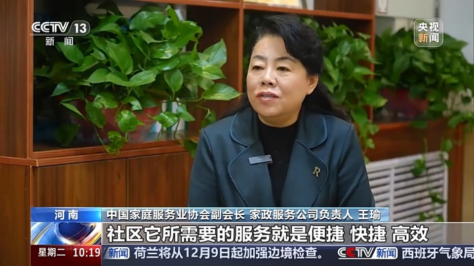 中国家庭服务业协会副会长 家政服务公司负责人 王瑜:社区它所需要的服务就是便捷、快捷、高效,我们家政扎在社区里头,就可以及时为老人提供他所需的各项个性化服务。