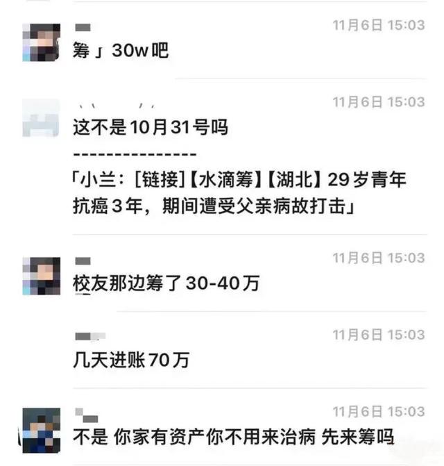 因罹患霍奇金淋巴瘤,现年29岁的兰某飞通过水滴筹发起目标90万元的筹款。然而发起筹款不到一个月,兰某飞就因在多个微信群晒新房照片遭到群友举报,水滴筹也将其筹款通道关闭。多位受访的爱心捐赠者表示,兰某飞今年11月1日在群里发布筹款消息,但11月6日便在群里晒新房照,此时兰某飞自称短短几日已筹款约70万元。