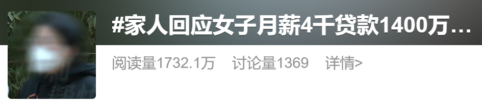 今日,微博话题#家人回应女子月薪4千贷款1400万买房#冲上热搜: