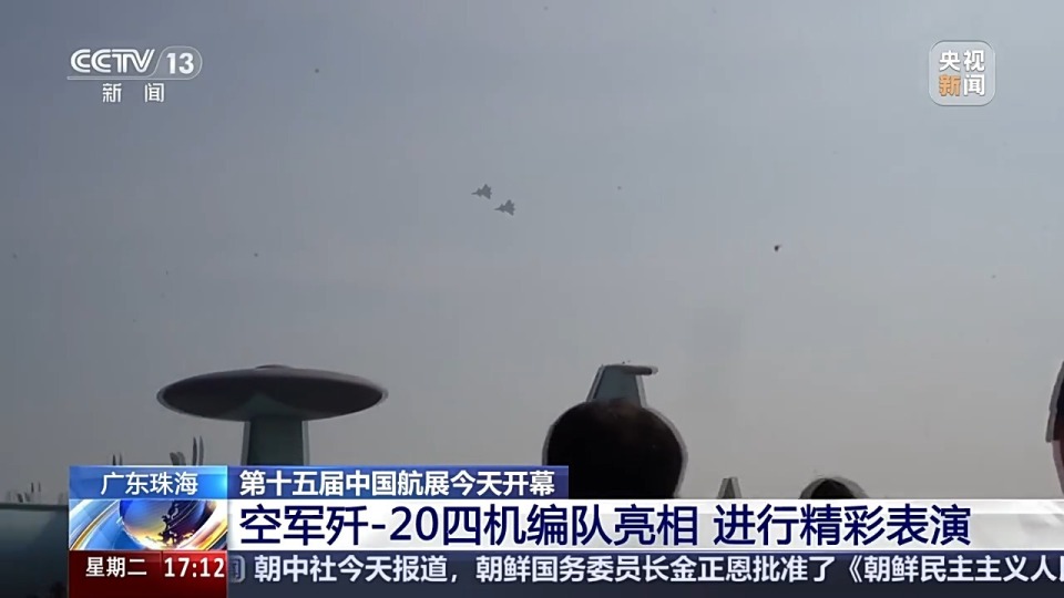 今天上午,空军歼-20战机以4机编队亮相,进行了精彩的飞行表演。
