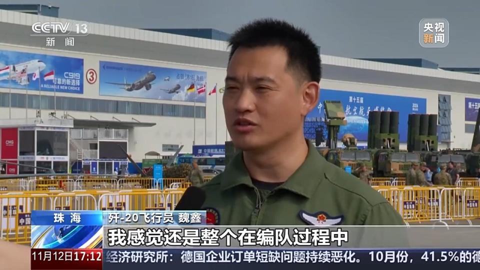 歼-20飞行员 张宇:我是第一次参加航展,有种新鲜感和紧张感会交织在一起,就像是第一次踏上未知又充满希望的战场,兴奋又忐忑。因为这些先进的装备是守护国家天空的利器,我们必须要确保自己有足够的能力驾驭它们、维护它们,让它们在保卫国家主权和人民安全中发挥最大的作用。