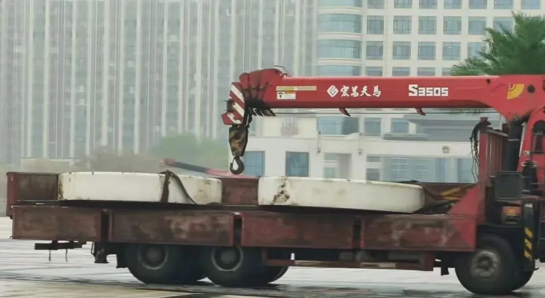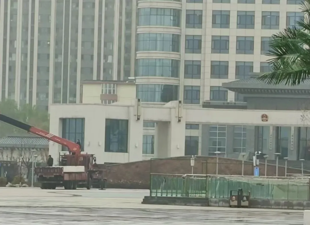 11月13日中午,《正在新闻》在太原市清徐县仿真椰子树拆除现场了解到,现场有几辆吊车正在施工。假椰子树约有 50 颗左右,县政府左侧的假椰子树已拆除约 5 颗。