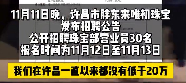 此前,于东来曾表示珠宝部门员工年薪从未低于20万元,“工资是1万,年底再发10万,现在都不是20万。”