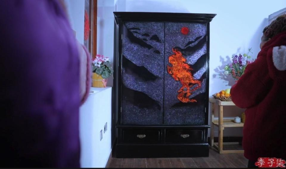 在确定学习雕漆隐花之后,李子柒又给了尹利萍一个意外:“我以为她是做一些比较小的、精细的东西,没想到她一来就要做一个大东西(大衣柜)。大东西驾驭起来是很难的。我建议她选一个简单一点但效果张扬的,这样便于拍视频。但她非常坚持。”