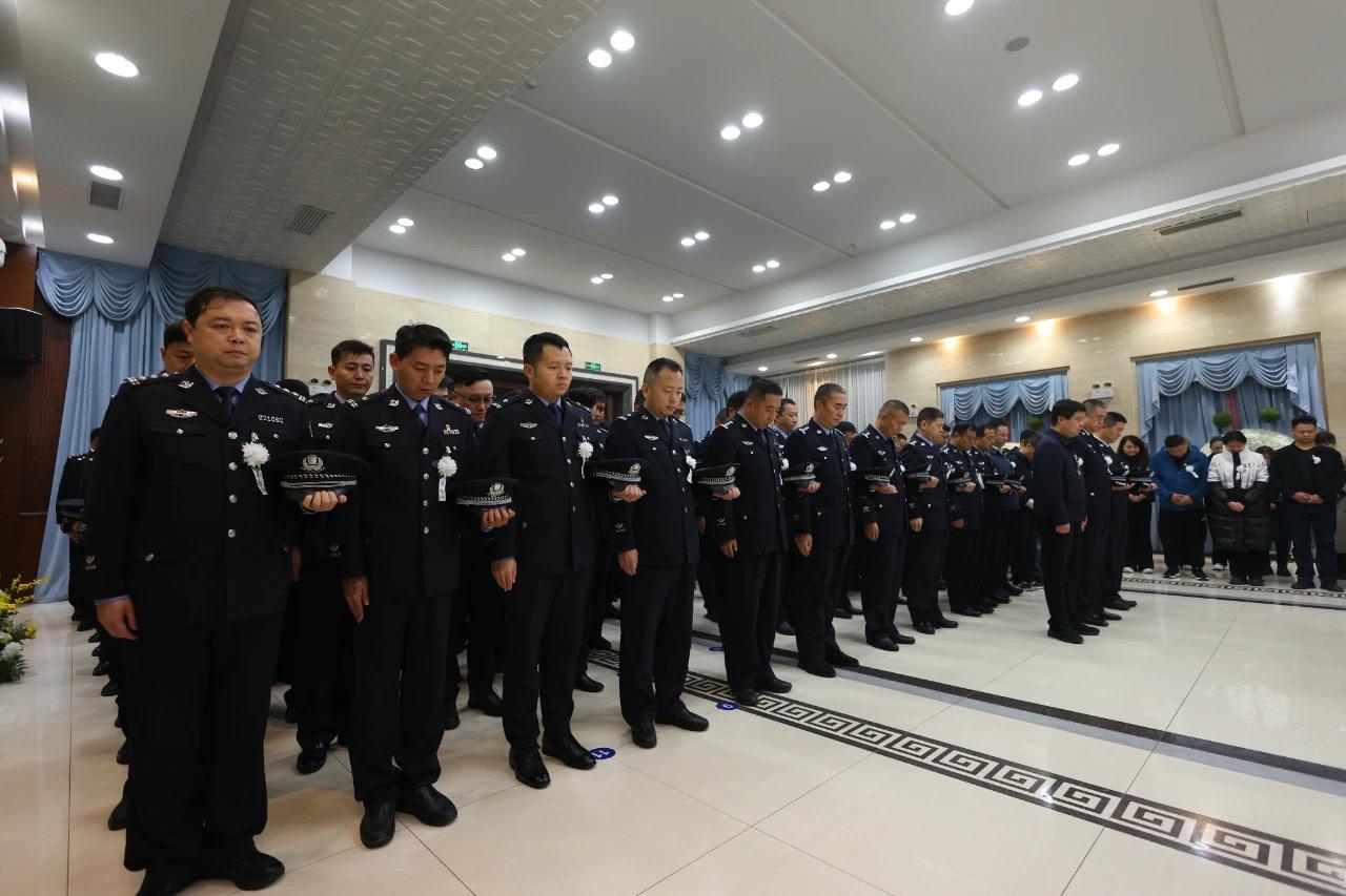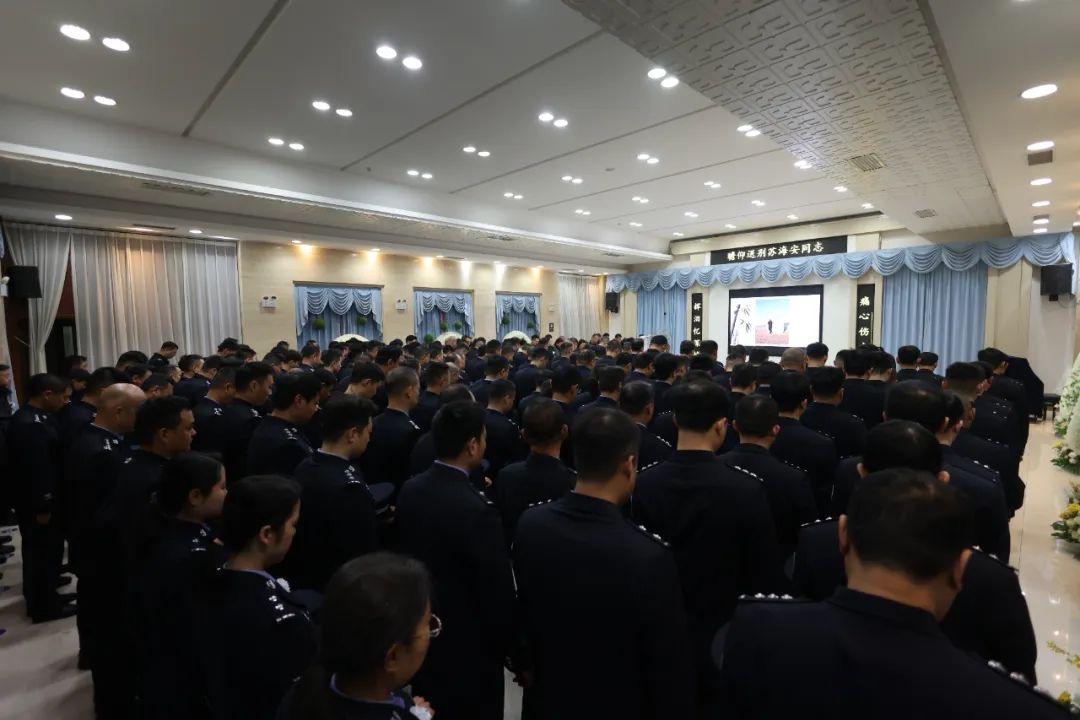 11月13日上午7时,西安市殡仪馆万年厅内哀乐低回、悲声阵阵,因公牺牲的西安市公安局新城分局民警苏海安同志遗体告别仪式庄重举行。西安市公安局政治部、新城区委政法委相关领导、西安市公安局新城分局党委班子以及苏海安同志的亲属、战友、生前友好、群众代表百余人挥泪送别。