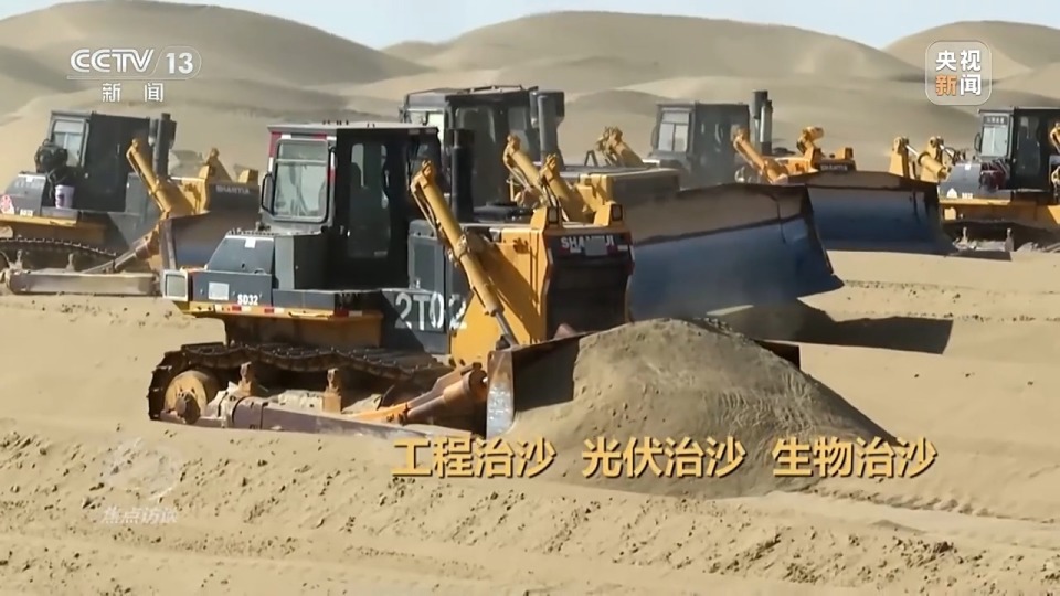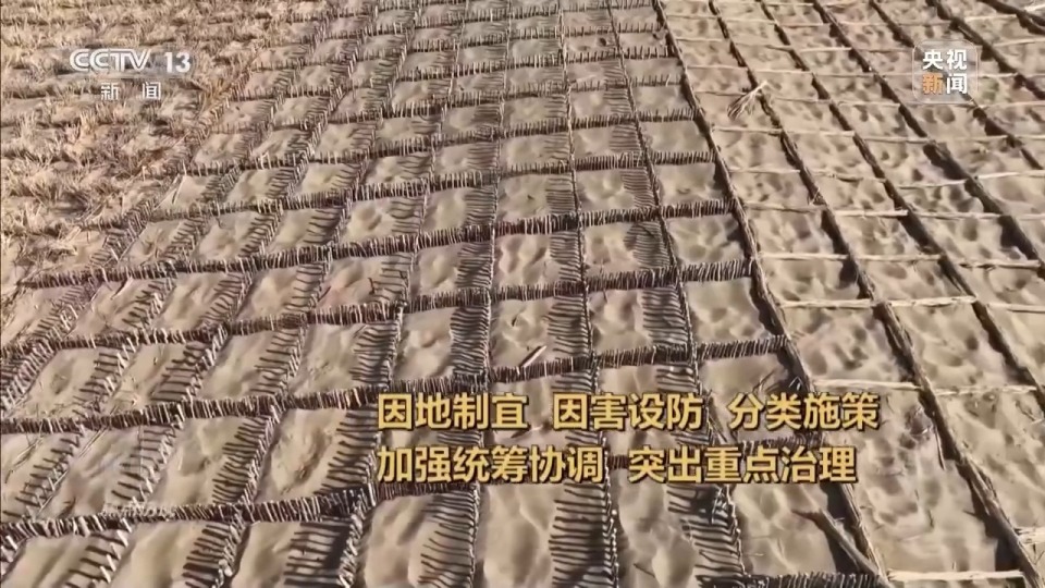 新疆维吾尔自治区林业和草原局生态保护修复处处长 王振锡:对治理区域的风沙危害情况、气象条件、水文条件都做了系统的梳理和分析。水资源条件比较好的区域,采用生物治沙的形式;在水资源条件相对比较匮乏、远离绿洲的区域,主要采用光伏治沙;在不具备水资源条件,光伏铺设条件也达不到要求的地方,主要以工程治沙为主。