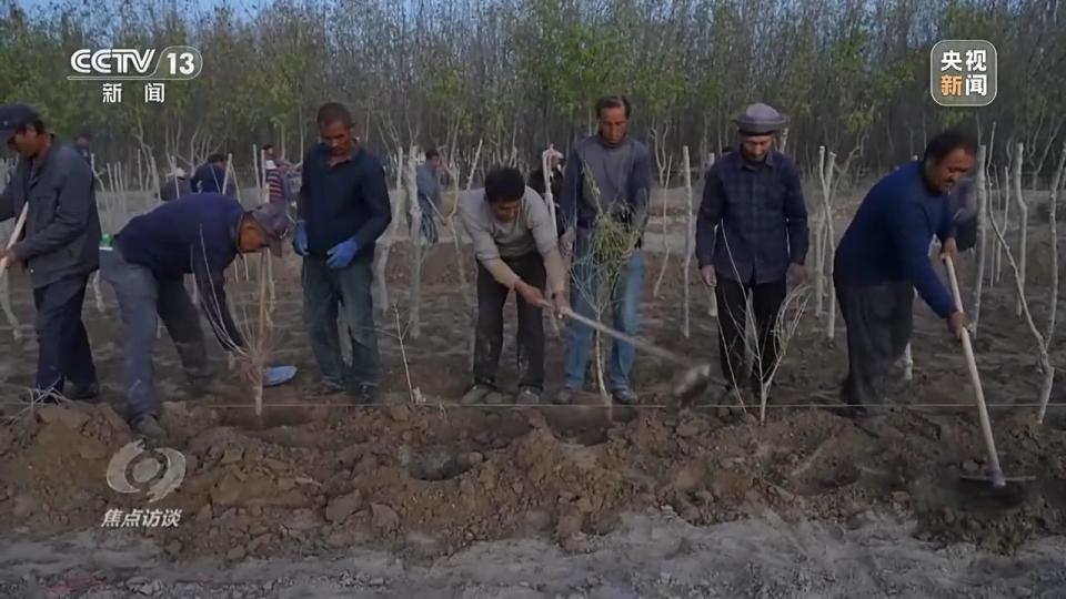 被改变的不仅是阿日希村。近年来,策勒县政府一直鼓励村民们参与到造林治沙当中。为了提高大家的积极性,当地不仅给植树的村民发放劳务补贴,还积极推动他们在防护林下套种经济作物,实现增收。