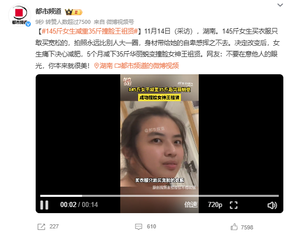 11月14日,湖南长沙。145斤女生买衣服只敢买宽松的,拍照永远比别人大一圈,身材带给她的自卑感挥之不去。决定改变后,女生痛下决心减肥,5个月减下35斤华丽蜕变,撞脸女神王祖贤。