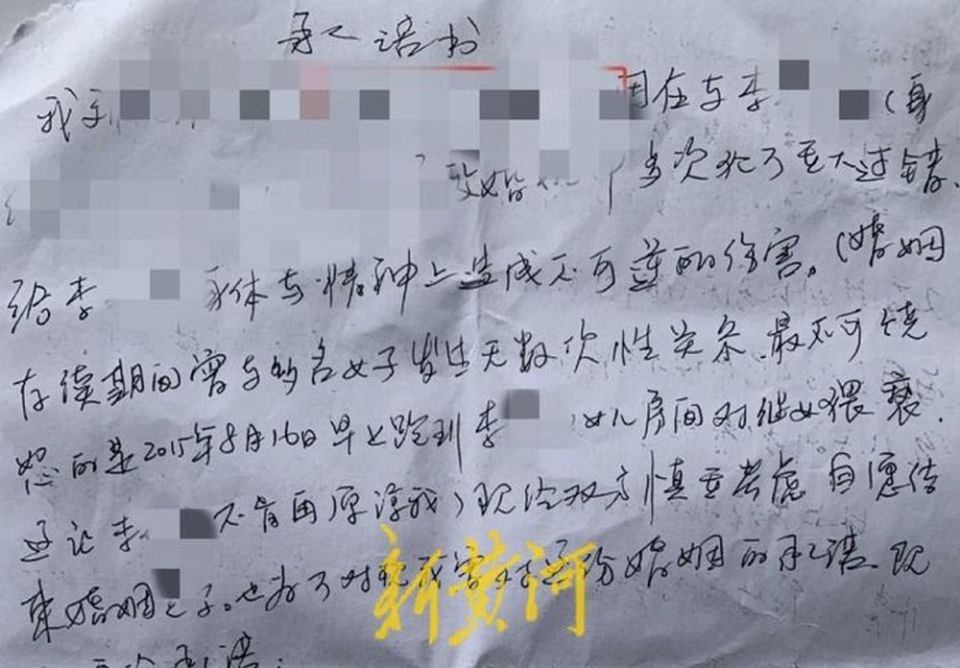 李女士告诉新黄河记者,“当时我坚信了女儿的说法,想要报警,刘某涛过来把我的手机摔坏了,还不让我出门。我个子比较矮小,也打不过他。之后他跪地哭求我原谅他,后来连我女儿也跪下来求我,说不想让弟弟没有父亲,刘某涛还写下了保证书。我当时就没有长一个心眼,思考一下为什么连我女儿也跪下来求我,一直到今年我才知道,他威胁我女儿称如果报警,就把我们两个都杀掉。”