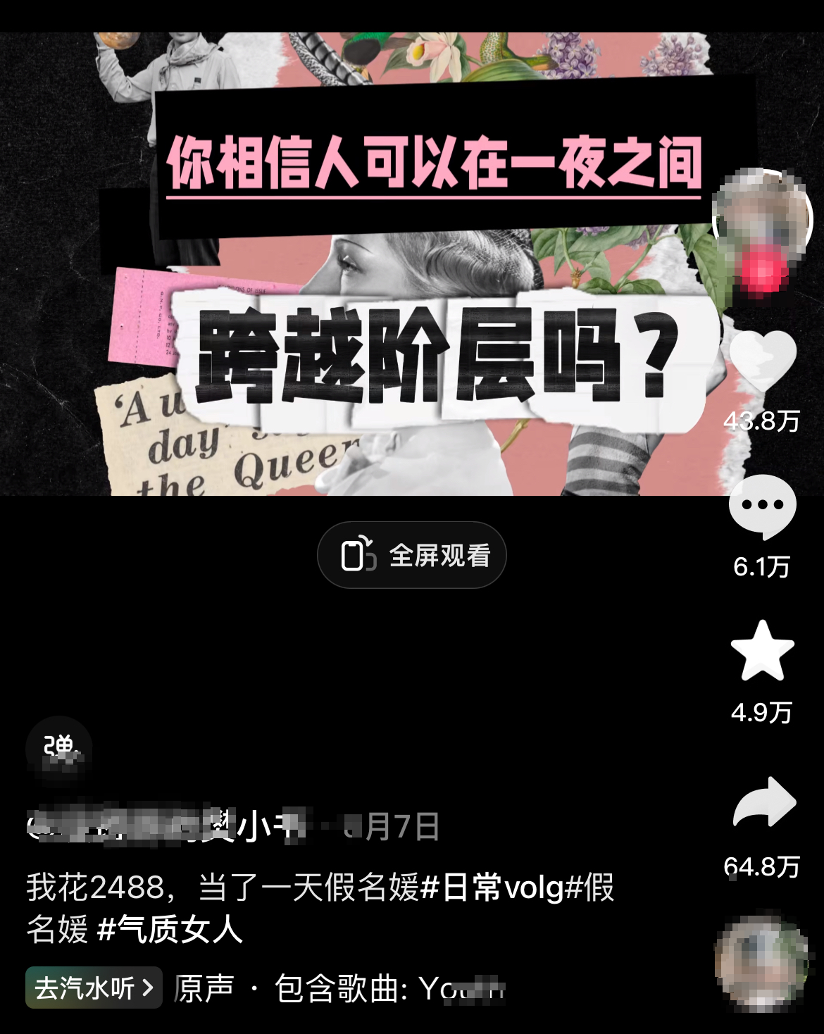 “6800元,拥有一日名媛体验卡”“用三位数变身沪上千金”“398元可以拍劳斯莱斯吗”“超美庄园下午茶,小说女主走进现实”……当下社交平台上,涌现了不少“名媛体验拍照”相关帖子,配图往往是高端奢华的环境场景和光鲜亮丽的人物主角。
