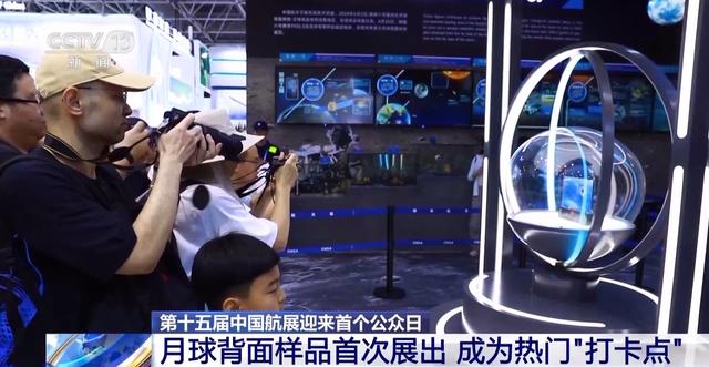 场馆内,多个展台的首发首秀产品成了大家的热门“打卡点”。其中,首次展出的由嫦娥六号取回的月球背面样品则是名副其实的场内“焦点”。