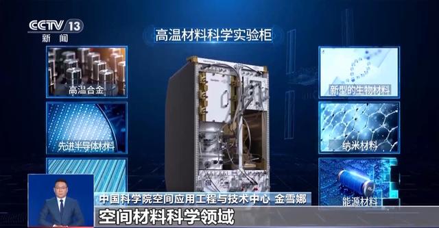 中国科学院空间应用工程与技术中心 金雪娜:主要是用于支持空间生命与生物技术领域,空间材料科学领域、微重力流体物理与燃烧领域,以及我们空间应用新技术领域的科学实验,共计能够支持36项科学实验。