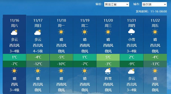 哈尔滨未来一周天气预报。(来源:中央气象台)