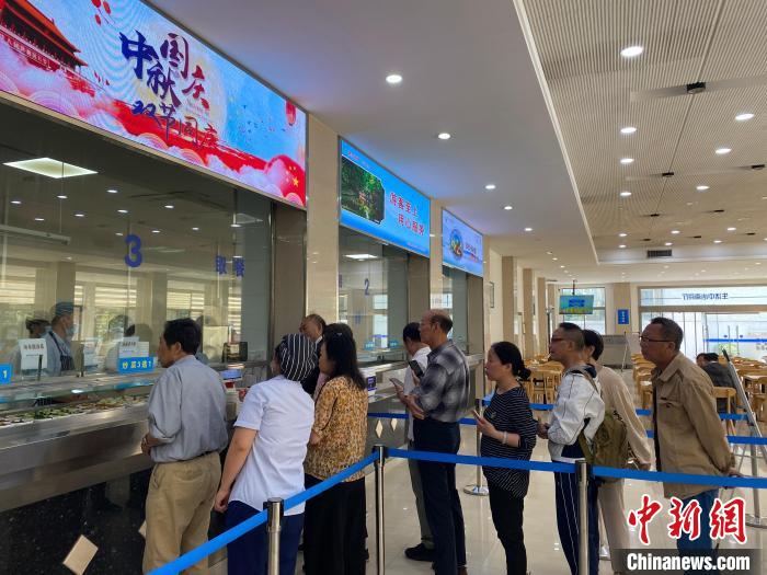 10月5日,外地游客在扬州市委市政府机关食堂选购淮扬风味简餐。崔佳明摄