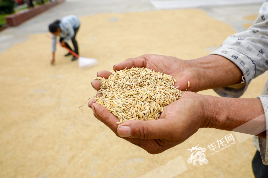 “在政府坝子晒谷,比在路边晒强多了。”戴着草帽的村民陈国廷,见记者搭话,便放下了不断翻动稻谷的耙子,扳着因劳作而皴裂的手指,数起来好处。