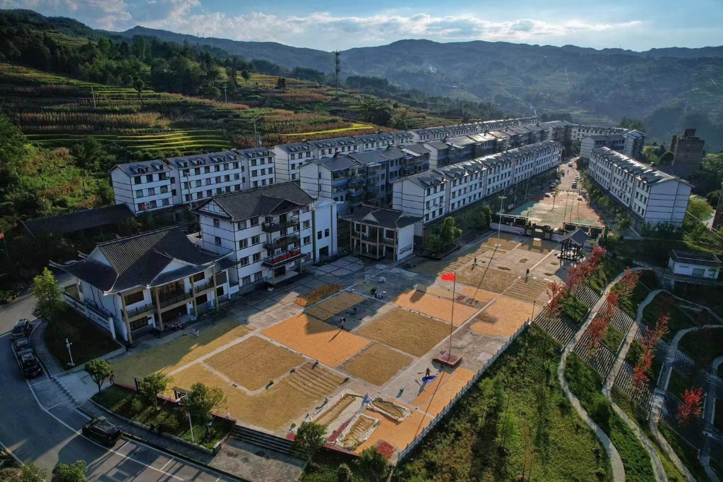 丰都栗子乡正值秋收,乡政府广场晒满了稻谷。满眼都是黄灿灿的谷子,尽是丰收喜悦。