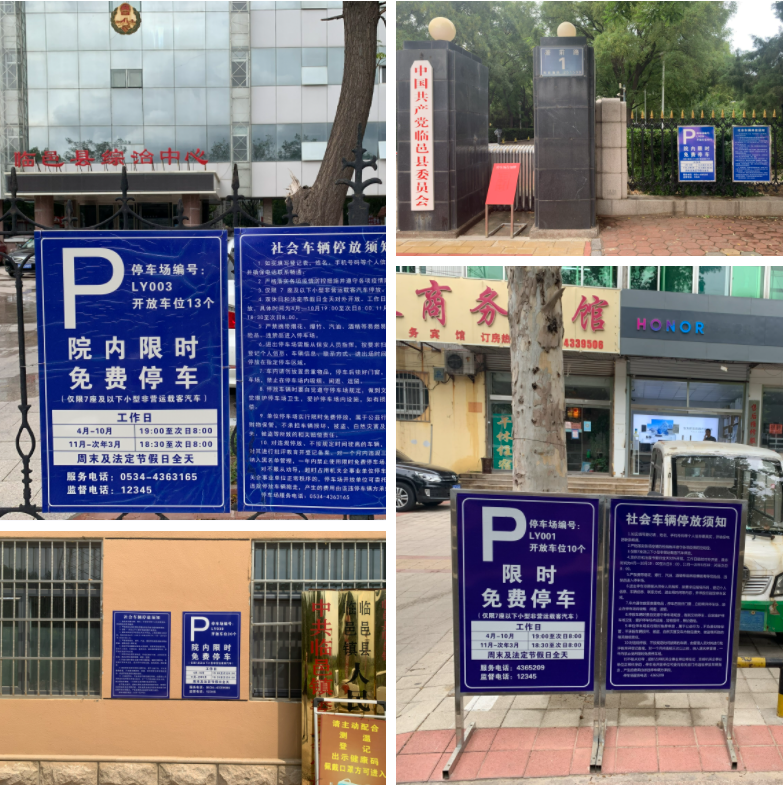 2022年7月,临邑县印发《全县党政机关企事业单位限时免费开放停车场(位)实施方案》,8月,该县印发《关于全县机关企事业单位停车场开放攻坚行动的通知》,39家开放单位按照“五统一”要求开展攻坚行动,包括安装统一停车指示牌、社会车辆停放须知牌、停车告知牌、划定车位停车线喷涂编号、开展安保人员培训等工作,推动工作落实落地。