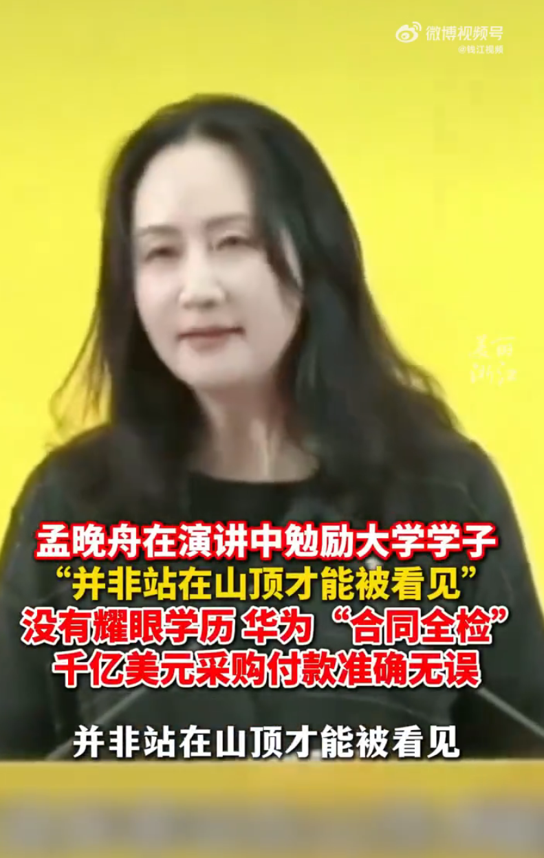 11月16日,香港中文大学(深圳)研究生毕业典礼上,华为公司孟晚舟作为特邀嘉宾分享了知识获取与专业发展之道,孟晚舟说优秀的定义从来不是唯一的。