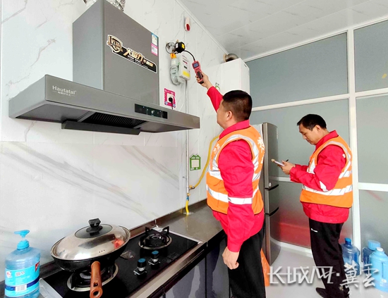 安全员检查燃气设备。长城网·冀云客户端记者 祝雪娟 摄