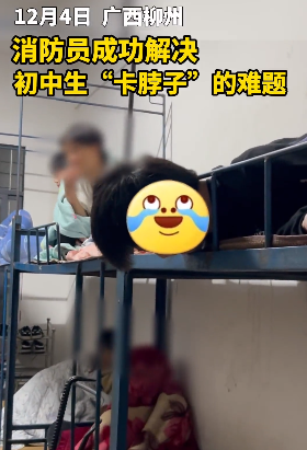 2023年12月4日,广西柳州,一初中生想与下铺舍友聊天,于是他尝试将头从床架栏杆空隙探出,不曾想头部被卡在栏杆无法挣脱,消防员及时赶到解困之。