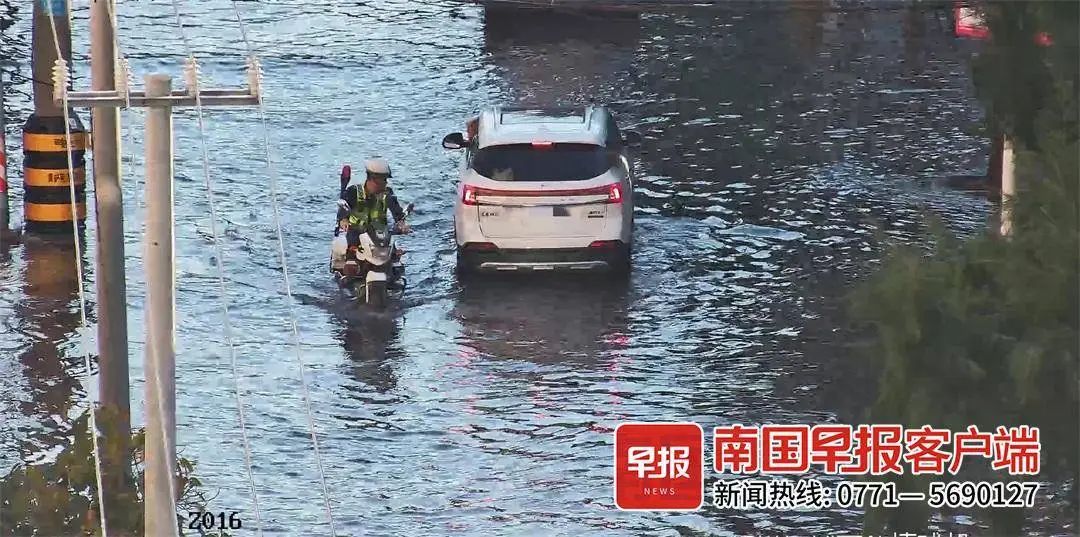 上午8时许,北海交警部门发布提醒信息称,海水灌入海城区滨海路,漫过路面深度10~20厘米,对过往车辆通行造成一定影响,交警已到场进行交通疏导,建议车主们提前绕行。