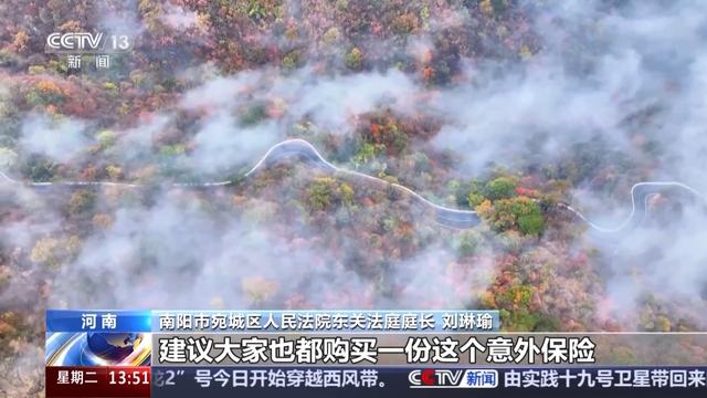 南阳市宛城区人民法院东关法庭庭长 刘琳瑜:首先是建议大家尽量还是说在没有户外经验的前提下,不要到那些地域去活动。对这个区域应该是先有一定的了解,对这个里边可能存在的风险、路线,以及这个温度,包括一些野生动物的出没,应该是提前有个认知。第二个就是说出行之前呢,建议大家也都购买一份这个意外保险,这是人身权利的一种保护。
