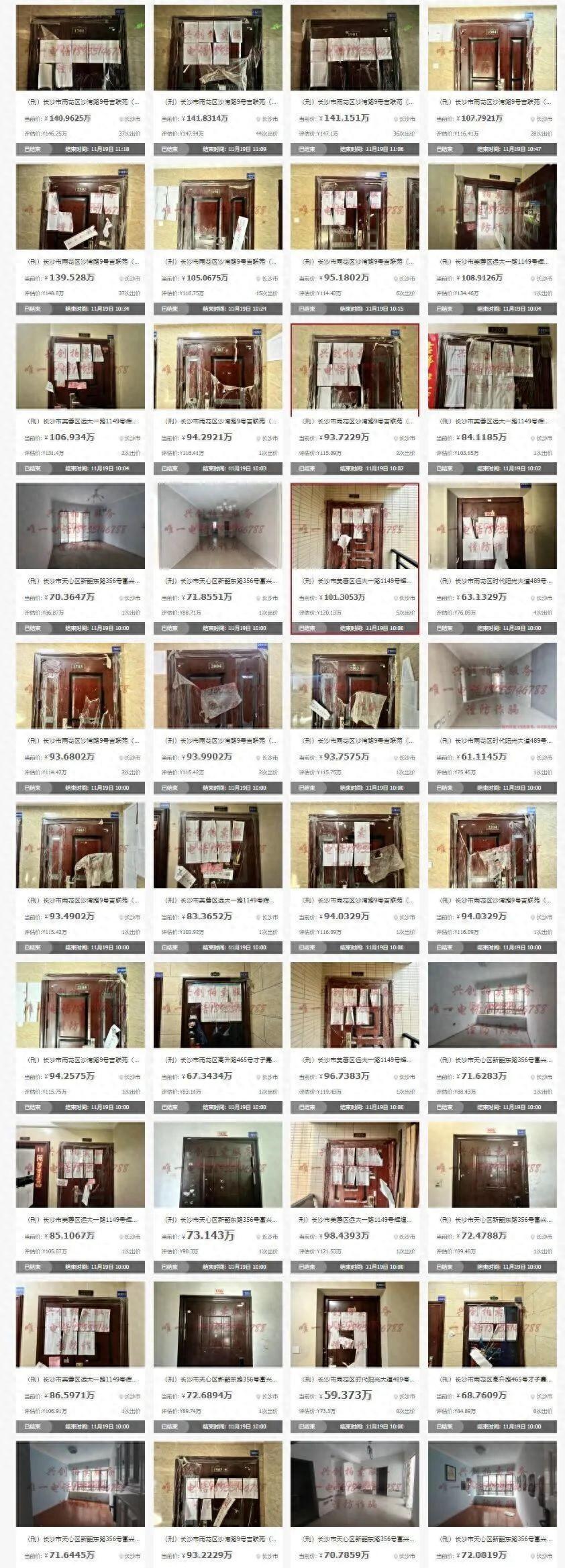 11月19日中午,合肥女子李梅名下位于长沙的83套住宅二次拍卖结束。截至上午10点,71套房产拍卖准时结束,另有12套房产出现不同时长的延时,所有拍卖在11:18全部结束。最终34套房产成交,49套流拍。