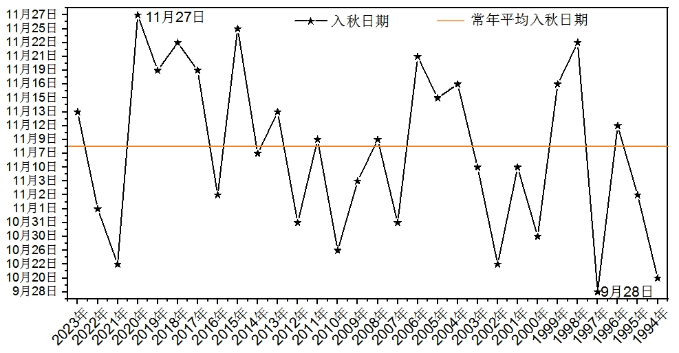 ▲深圳近三十年(1994年-2023年)入秋时间图