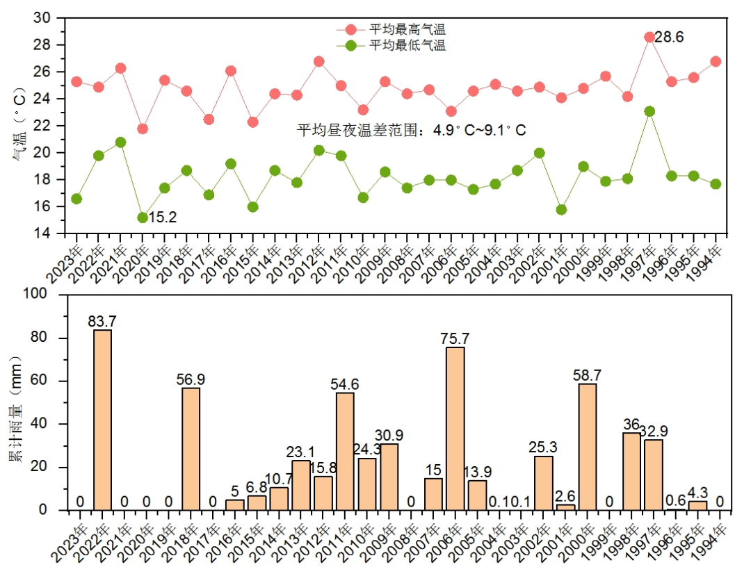 ▲深圳近三十年(1994年-2023年)入秋两周内气温和降雨情况