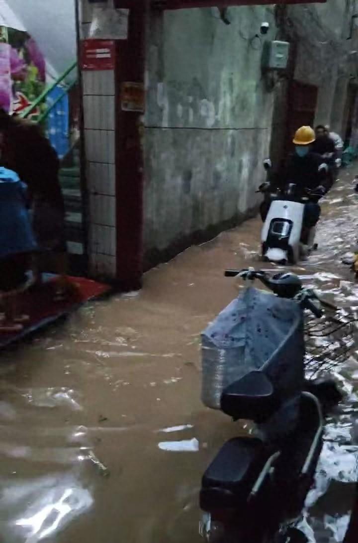 市民张先生说,他上午7时10分骑电动自行车途经小寨西路吉祥村十字时,道路双向车道及辅道已经满是积水,积水最深处几乎有电动车轮胎般高。
