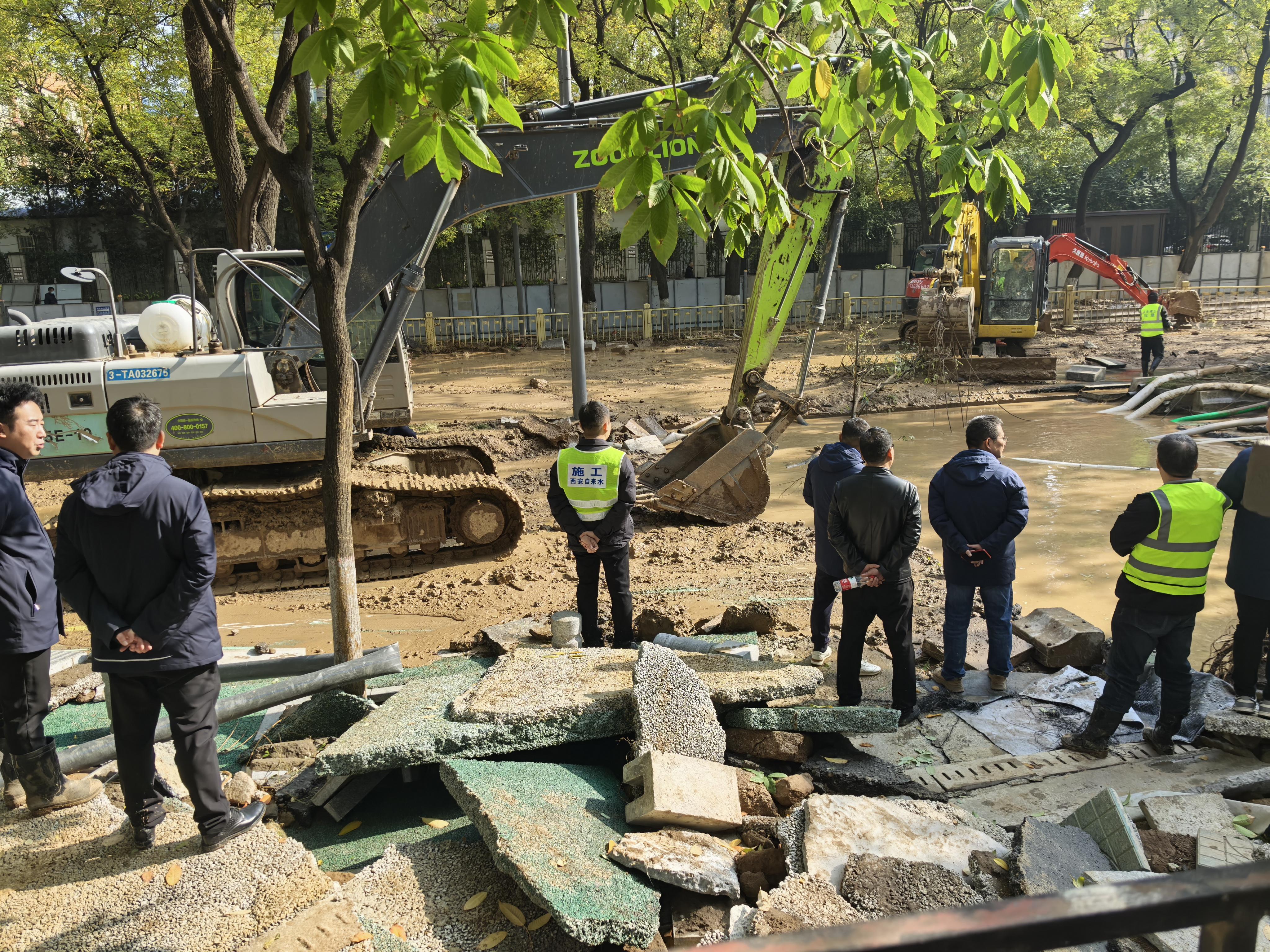记者在走访中了解到,距离漏水点较近的交大一附院,较早时曾有电梯停止运行,不过接诊等运行正常。上午11时许,漏水点附近多辆工程车正在进行抢修作业,漏水点地下的积水较多,现场正在加大力度进行排水。