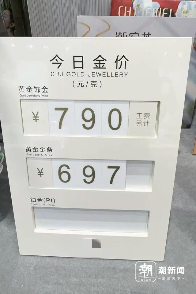 杭州一家品牌珠宝店的当日金饰价格。吴恩慧 摄