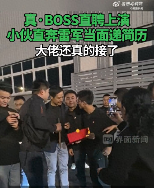 雷军耐心倾听小伙子的介绍,还笑着接过了他的简历,递给身边的助理。