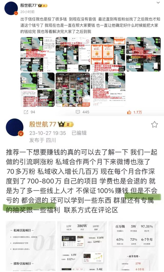 退款异常后仍发布新项目,引流的殷世航自称受害者