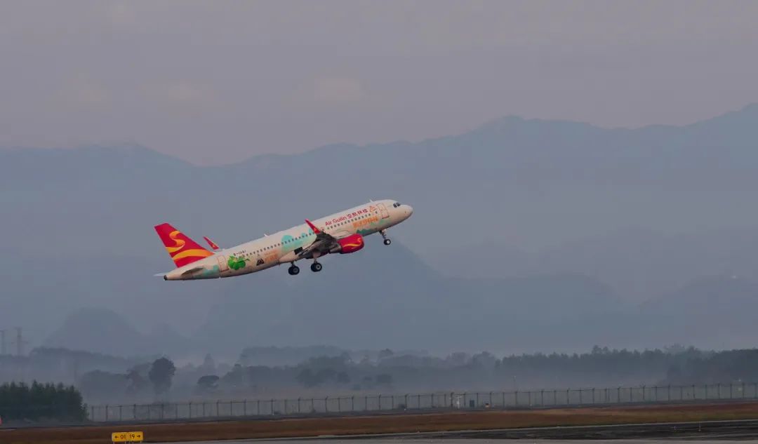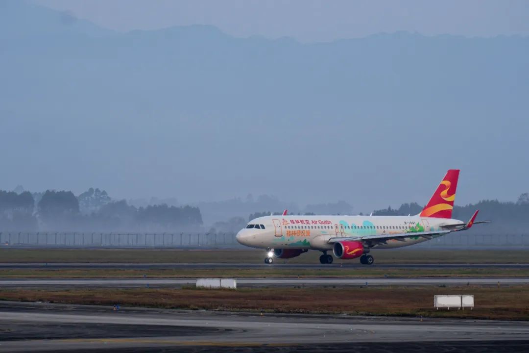 21日上午6点半,桂林两江国际机场,一架桂林航空A320飞机迎着朝阳缓缓升空,在空中经过系列测试操作后,7点半平稳降落在跑道上。